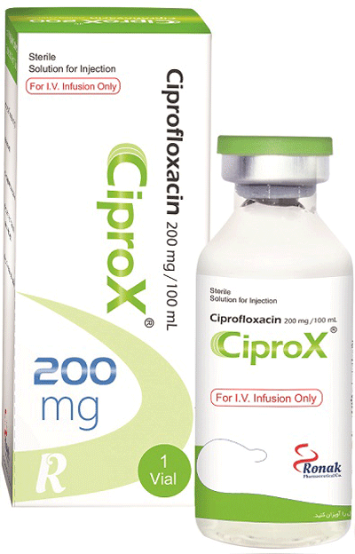 - نام عمومی فارسی: سیپروفلوکساسین 10mg/1mL,20mL محلول تزریقی